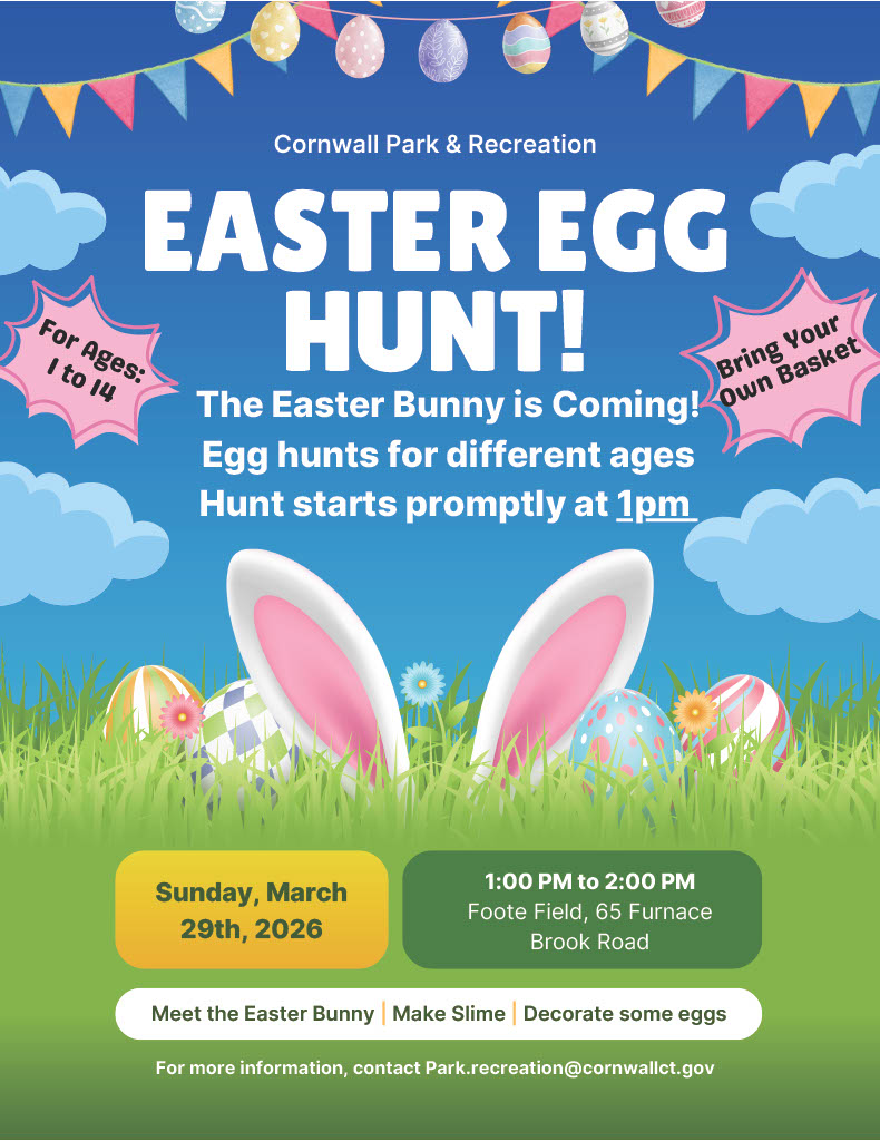 MUST RSVP by March 21st to park.recreation@cornwallct.gov or call/text Bethaney Mastrocola (860) 419-5337